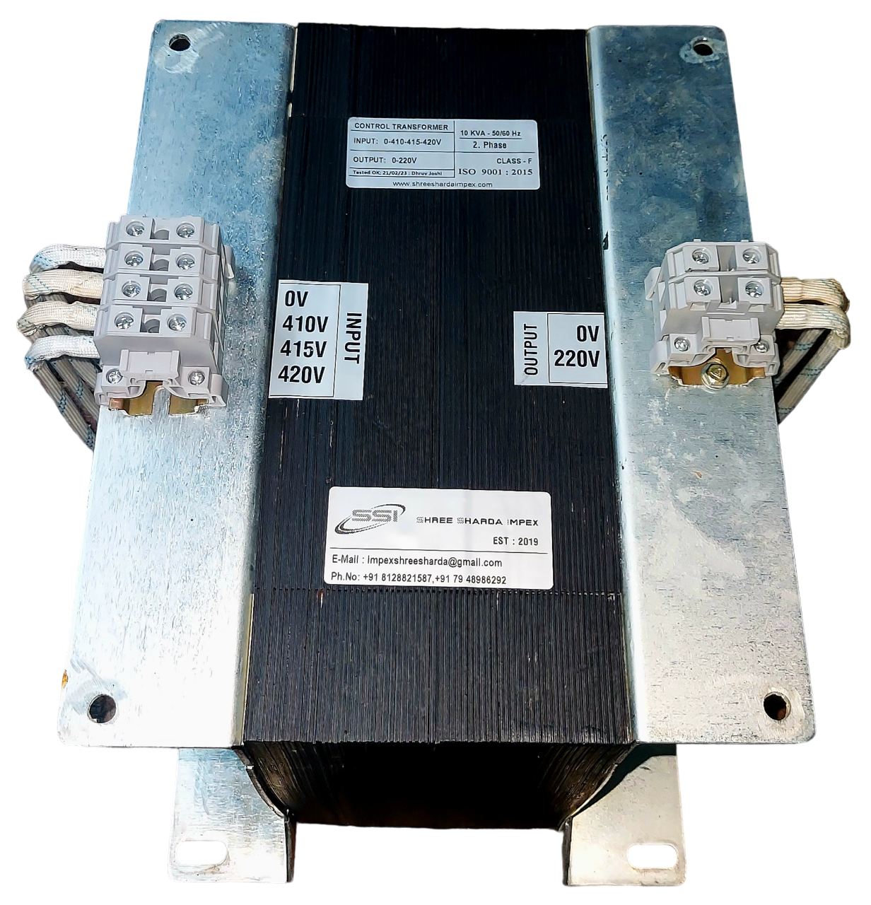 10 KVA - 2.Phase - 50/60Hz, 420/220V, Copper Wound, Class F Insulated, as per IS and IEC.