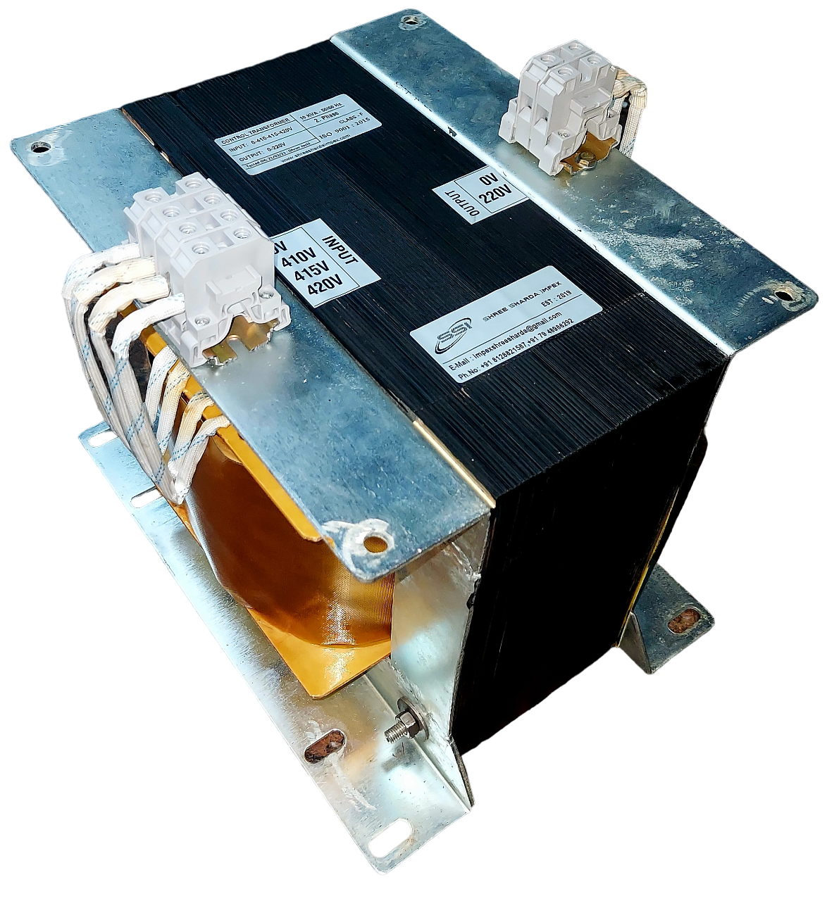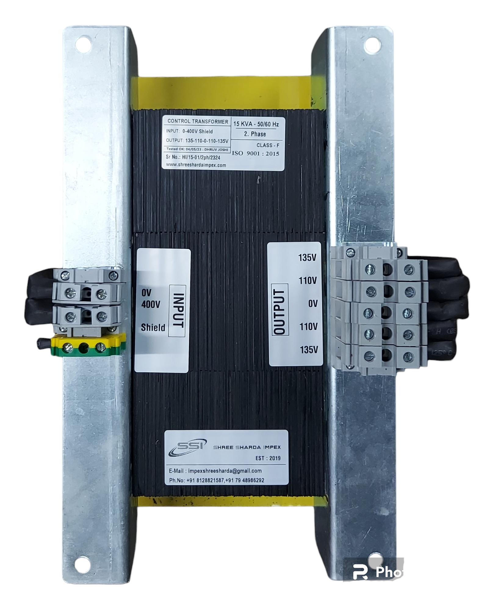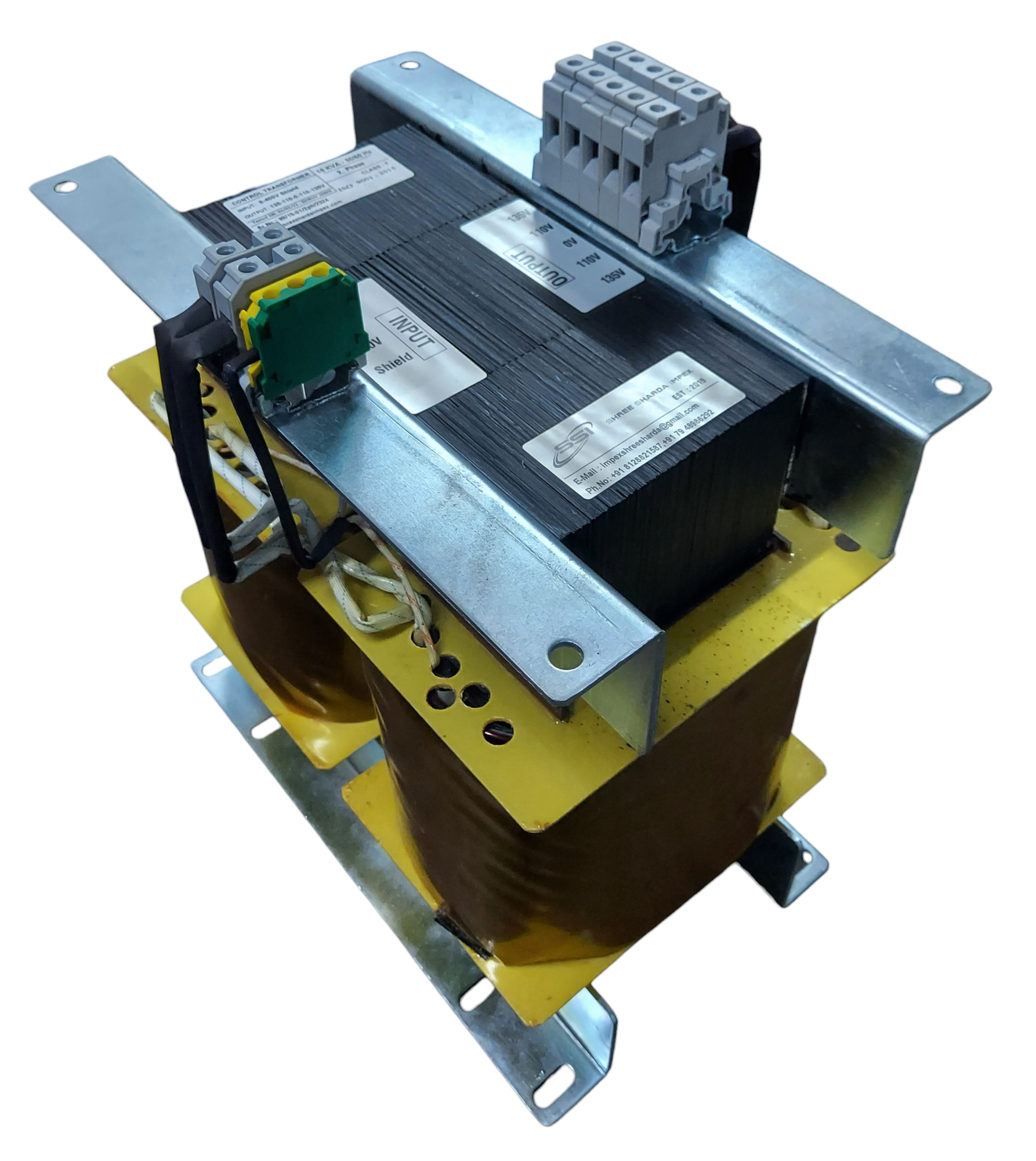 15 KVA - 2.Phase - 50/60Hz, 400/135V Copper Wound, Class F Insulated, As per IS and IEC standard. ISO 9001:2015.