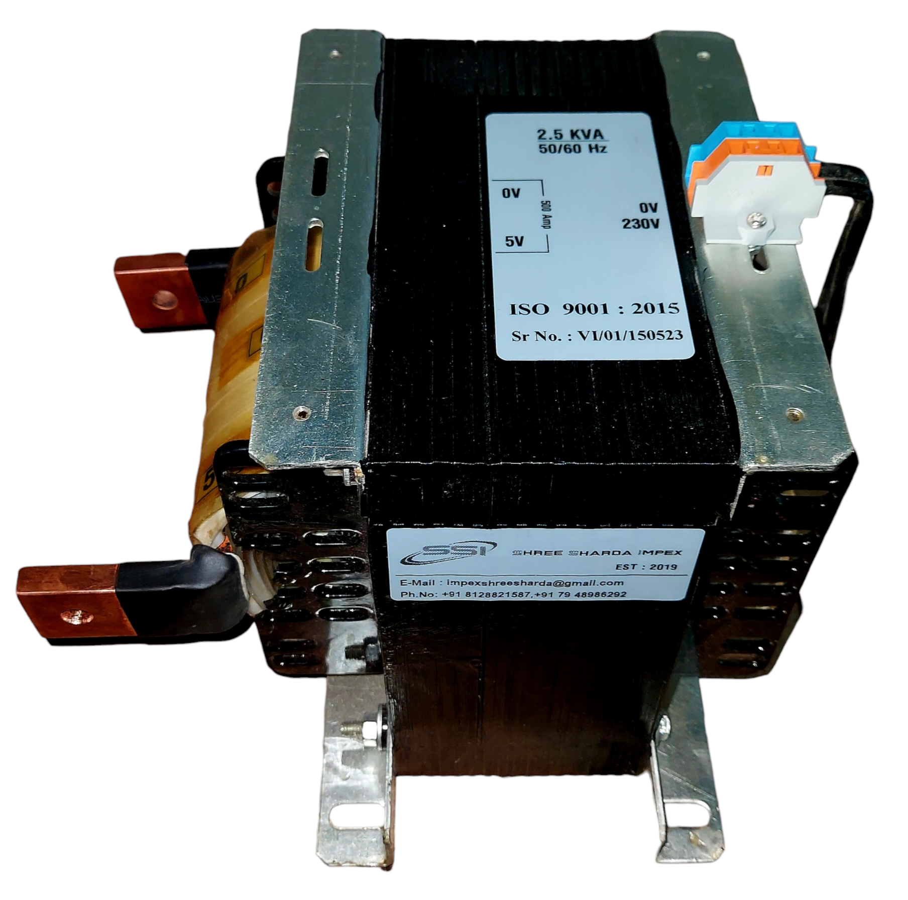 2.5 KVA - 1.Phase, 50/60Hz, 230/5V (500.Ampr), Copper Wound, Class F Insulated, High Ampr as per special Requirement.
