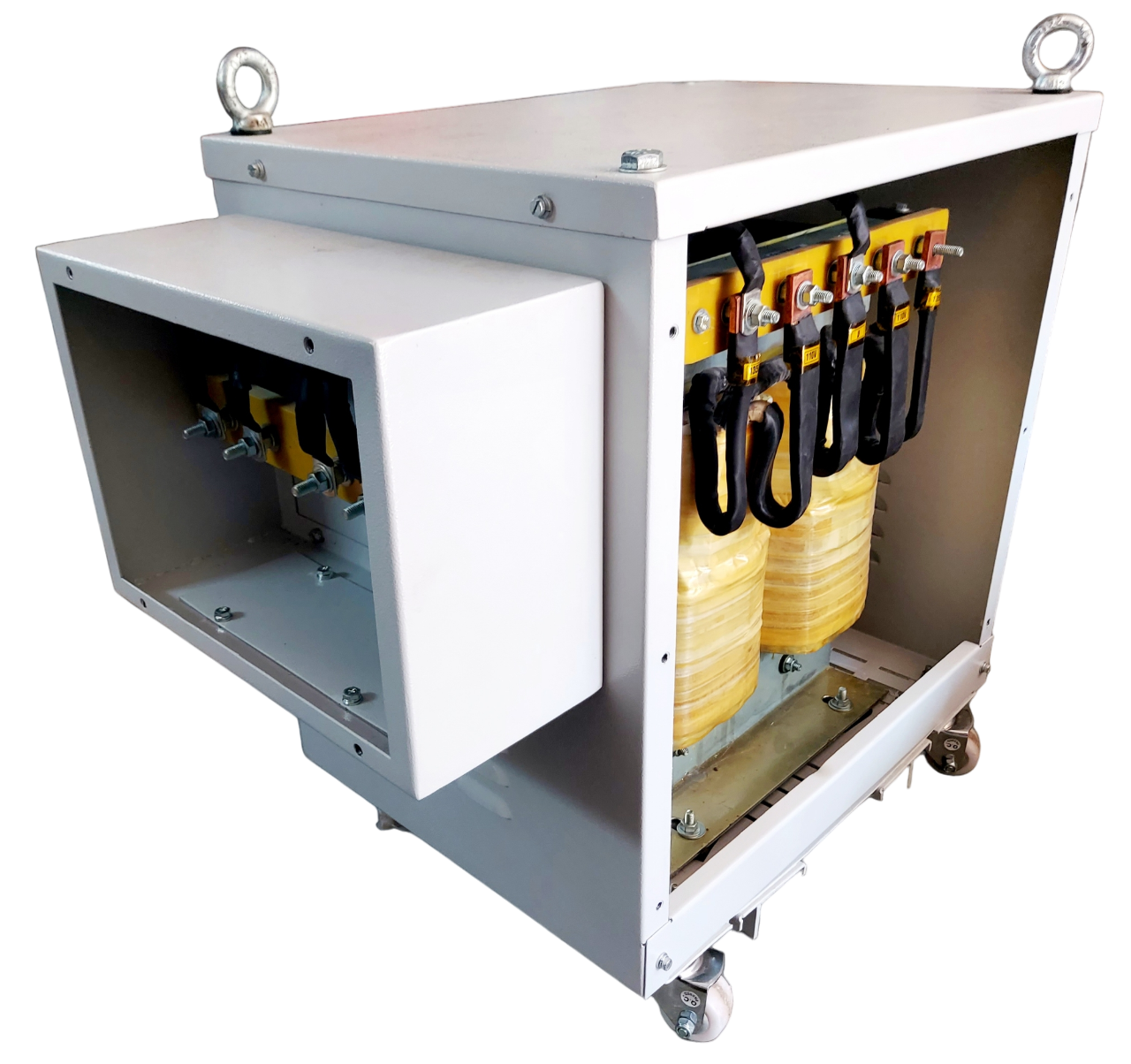 45 KVA - 2.Phase - 50/60Hz, 400-135V, Enclosed IP 55, Copper Wound, Class F Insulated, As per IS and IEC Standard, ISO 9001:2015