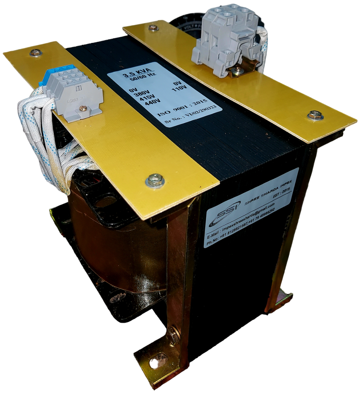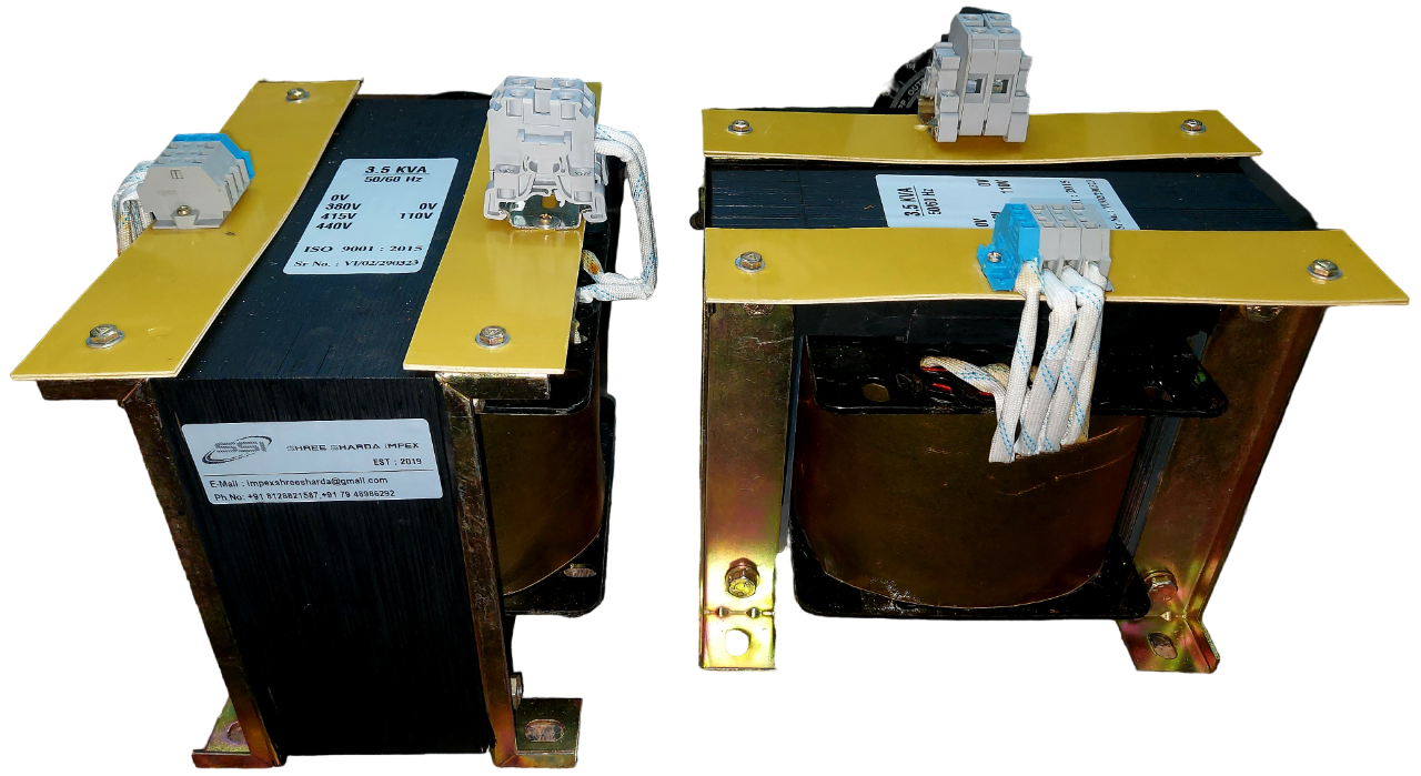3.5 KVA - 1.Phase - 50/60Hz, 415/110V, Class F Insulated, Copper Wound, IS12021, ISO 9001:2015